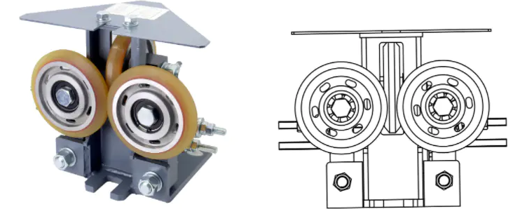 フローティングマウント: ローラーはガイドレールの取り付け誤差に±3°の範囲内で適応できます。