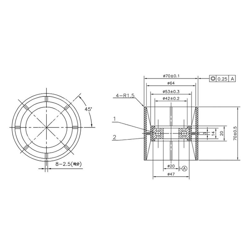 支持ローラーの直径は 70mm、高さは 70mm です。 6204ベアリングを搭載しています。ベアリングの内径は20mm、外径は47mm、厚さは14mmです。大きなラジアル荷重とアキシアル荷重に耐えることができ、高速回転が可能です。ナイロン素材を使用しており、耐摩耗性、耐食性、耐衝撃性、自己潤滑性に優れています。ナイロン加圧ローラーは回転中の安定した伝達性能を維持し、振動や騒音を低減します。